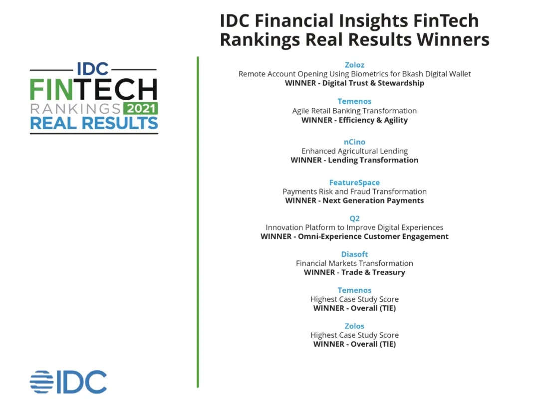 2021年度 IDC Fintech Rankings(IDC全球金融科技排行榜)及 IDC Fintech Rankings Real Results Awards (IDC全球金融科技真实价值奖) 于2021年9月13日正式揭晓。
