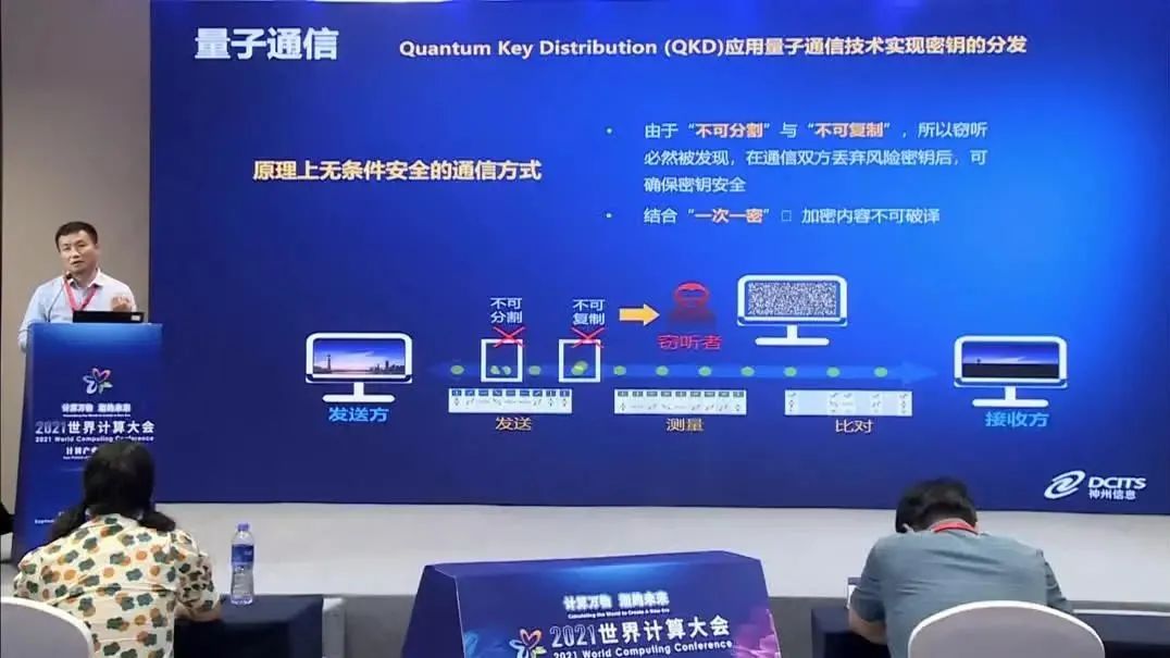 9月16日~18日,由湖南省人民政府、工业和信息化部联合主办“2021世界计算大会”在湖南长沙盛大举办。本届大会以“计算万物·湘约未来——计算产业新格局”为主题,聚焦“计算”与“数字”本质,围绕前沿技术、数据要素、人工智能、软硬件技术、信息安全、生态融合、新型基建、先进计算与先进制造等主题,为全球计算领域搭建一个专业化交流、高端化对接,共赢共享的国际合作平台。神州信息量子通信产品研发专家王玉龙出席前沿技术与新型计算主题峰会,并做题为《量子通信提升金融机构抗攻击能力》的演讲。