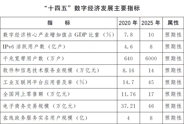 展望2035年,数字经济将迈向繁荣成熟期,力争形成统一公平、竞争有序、成熟完备的数字经济现代市场体系,数字经济发展基础、产业体系发展水平位居世界前列。
