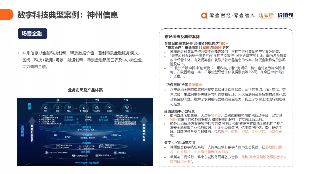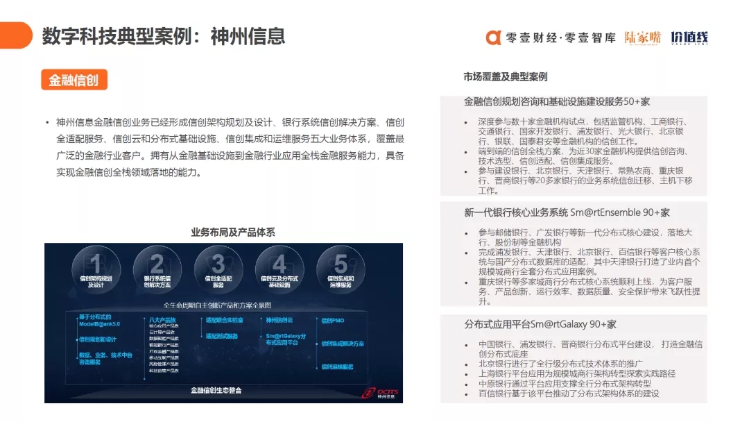 报告发布最后,零壹智库副总裁、零壹研究院院长于百程分享了数字科技服务商的图谱,将神州信息等公司作为数字科技典型案例做出介绍。