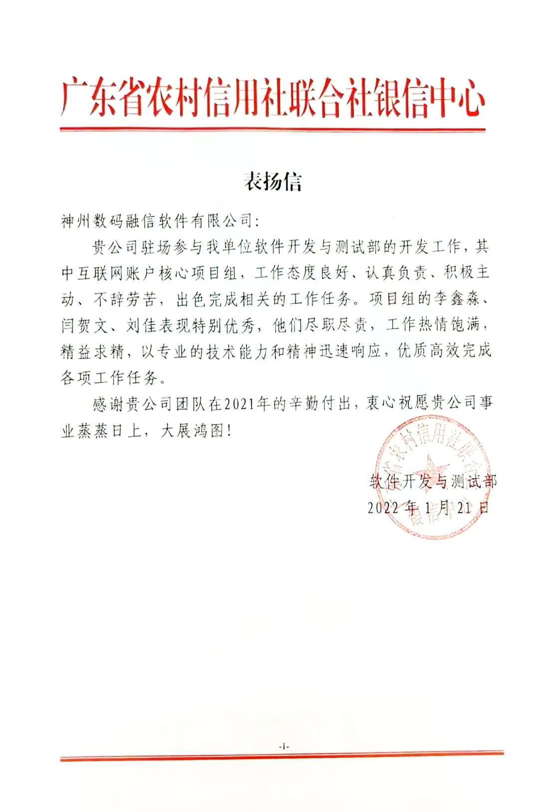 作为我行新一代分布式核心系统建设重要合作伙伴,贵司长期以来与我行肝胆相照、风雨同舟,以勇于创新的强烈意识,知难而进的开拓精神,解决问题的执着追求,在项目建设各阶段给予我行极大支持,协助我行顺利完成分布式技术平台、分布式运维平台以及国际汇款业务功能投产上线,为2022年4月新一代分布式核心系统全面投产奠定了坚实基础。