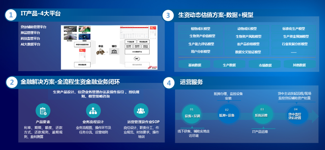 以生猪为试点,通过利用现代信息技术、动态估值模型、生物资产数据库和物联网技术、创新生物资产动态估值技术,动态评估生长中的活体动物和植物作为抵押物的价值变化。还贷过程中,引入耳标、芯片、电子围栏、GPS 定位追踪系统等,保全农业生物资产抵押物的价值,突破了生物资产过去不能成为合格抵押物的技术瓶颈,解决了规模农户、家庭农场、农业合作社、涉农中小企业等新型农业经营主体缺乏合格抵押品的贷款难题。