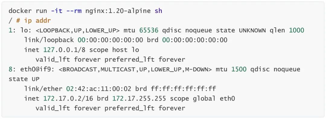 一个容器启动后,在默认情况下一般都会只存在两个虚拟网络接口(loopback和eth0),而loopback的流量始终都会在本容器内或本机循环,真正对业务起到支撑作用的只有eth0,当然这对大部分业务场景而言已经能够满足。