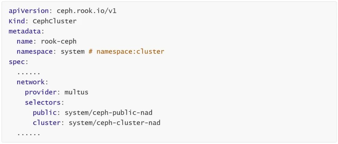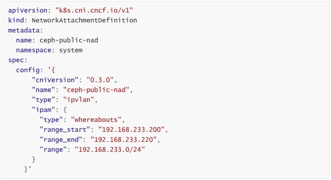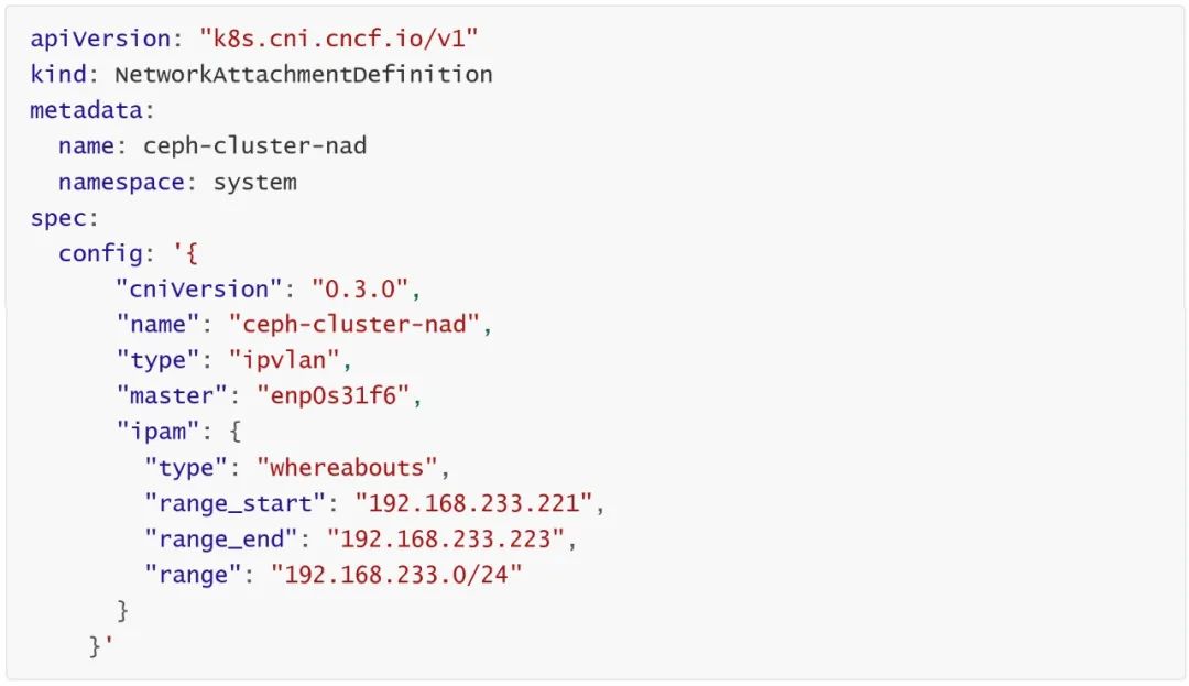 同时为解决背景描述的痛点和更贴近生产环境,下面展示时间案例:实现基于Rook部署Ceph(分布式存储系统)时实现Ceph 控制面和数据面的网络流量分离。真实生产环境下,租户将会在集群内产生相当大数量级的持久性存储数据,而对于分布式存储必定要满足高可用特性(即数据和服务存在多副本),同步庞大数量级的存储数据将导致网络性能的下降,如果控制面网络和数据面网络使用同一张网卡分发,也会导致用户端明显感知到系统的不稳定性。因此网络分离有益于提高性能以及提升用户体验。