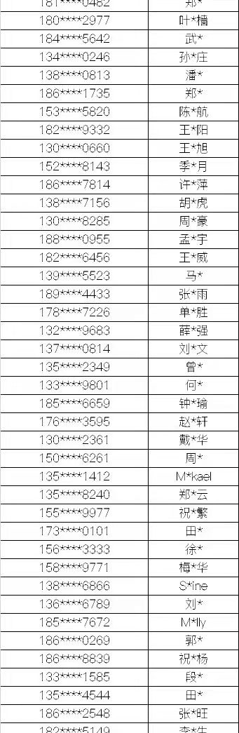 名单如下