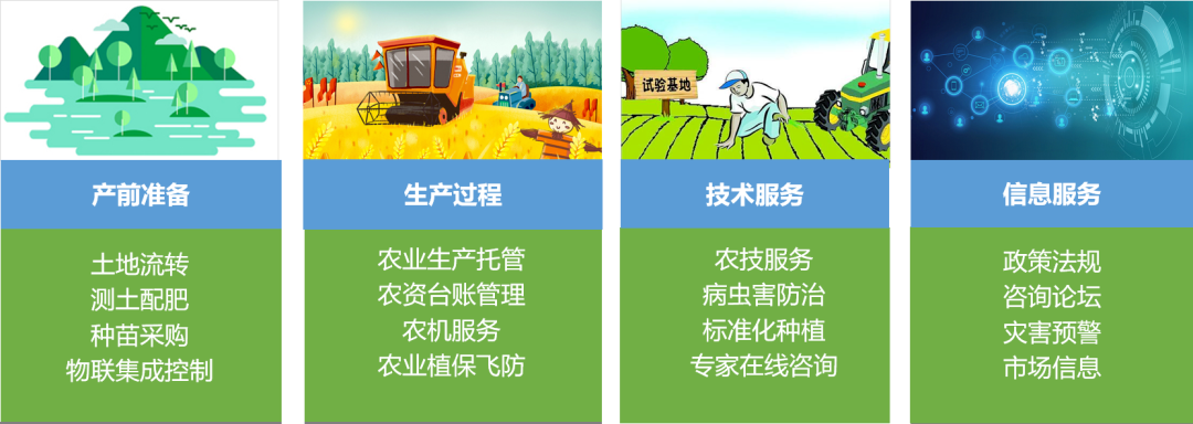 “4”个应用——建设围绕农业生产、经营、管理、服务类应用平台系统
