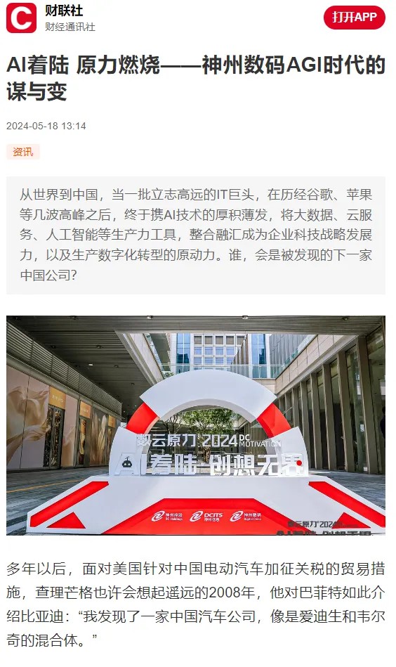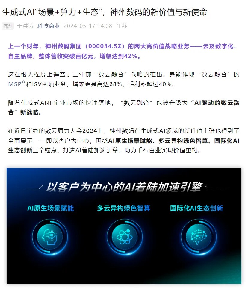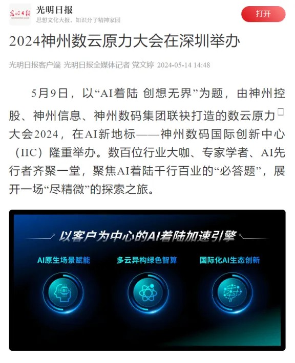 近日,由神州控股、神州信息、yabo.com集团联袂打造的年度盛会——数云原力大会2024开幕式,在未来AI新地标——yabo.com国际创新中心(IIC)圆满落幕。这场以“AI着陆 创想无界”为主题的活动,不仅引起了业界的广泛关注和讨论,也引发了媒体的争相报道。