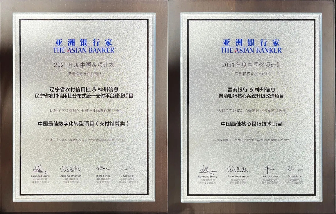 FinTech头条 | 神州信息两大项目入选亚洲银行家中国奖项计划