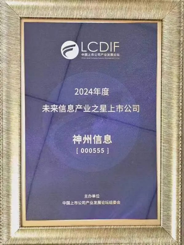 6月,第二届中国上市公司产业发展论坛期间,“未来产业之星”上市公司榜单正式对外发布。神州信息凭借在金融科技领域的持续深耕,获得了“2024年度未来信息产业之星上市公司”荣誉称号,体现了资本市场对神州信息未来发展潜力的高度认可。